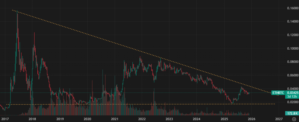 The Ethereum to Bitcoin ratio is currently at 0.034.